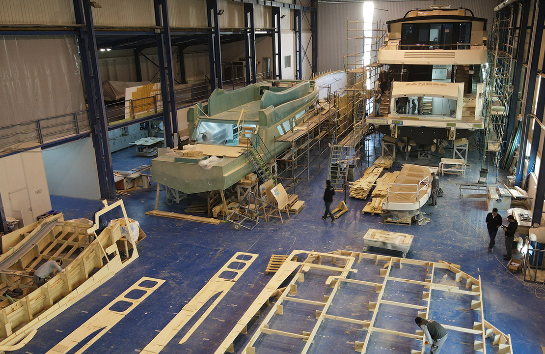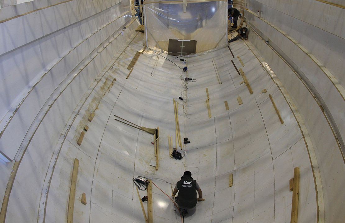 - Dedicated bulkhead and deck lamination area with in-floor heating for: